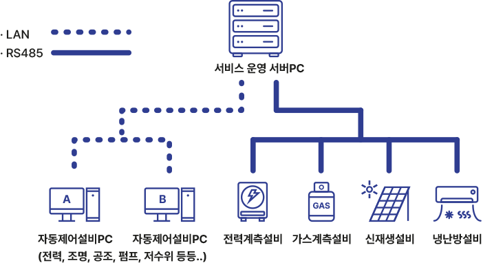 통신/감시/제어하여 실시간 에너지 조회 및 분석 결과를 제공하는 제로에너지빌딩 관리시스템입니다.